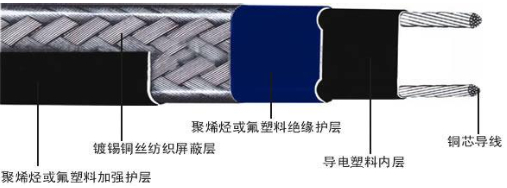 ①:鍍錫銅絞線     ②:內護套     ③:發熱絲     ④:外護套